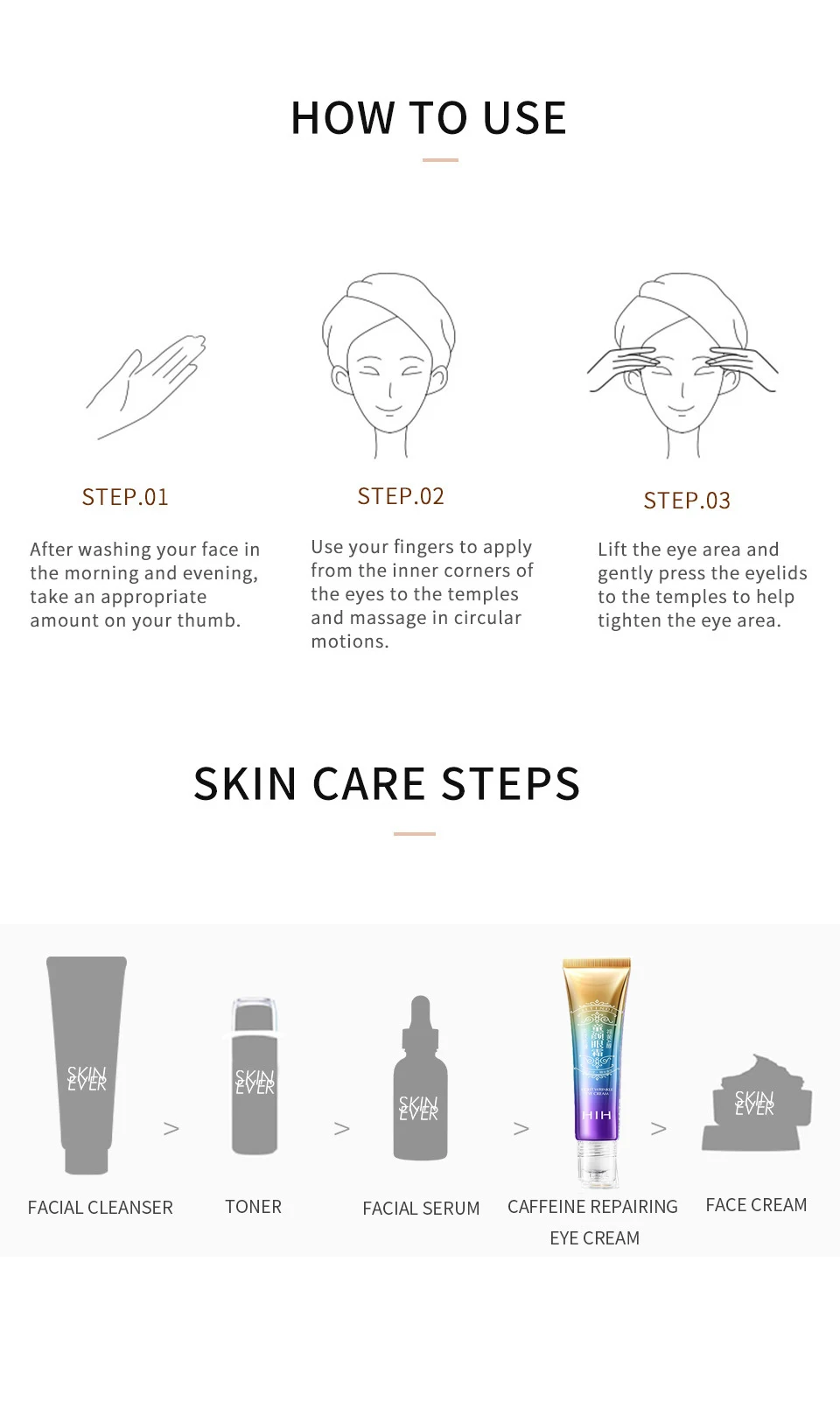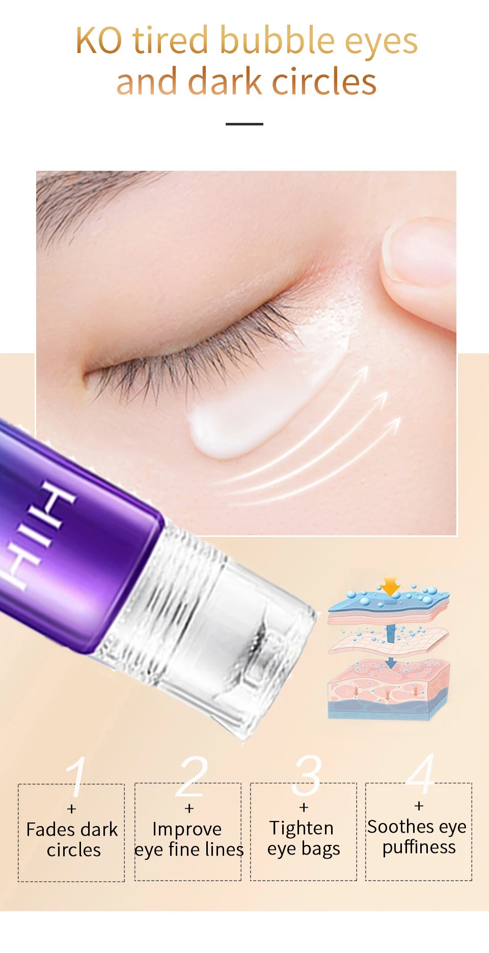Scope of Use: Applicable to eye skin with dark circles, puffiness , dry , wrinkle and other issues..