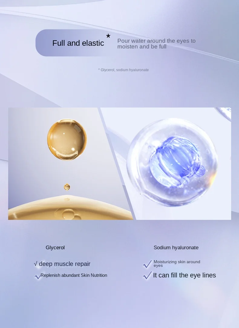 Product Features: The combination of rich herbal essence and probiotic technology has a powerful ability to regenerate and repair damaged skin cells. It can soothe eye skin tension, moisturize, tighten and repair skin, help reduce the appearance of lines and wrinkles. At the same time, it has the functions of removing dark circles and anti-puffiness, anti-aging and accelerating the regeneration of skin texture, and intensely hydrates dry skin .
