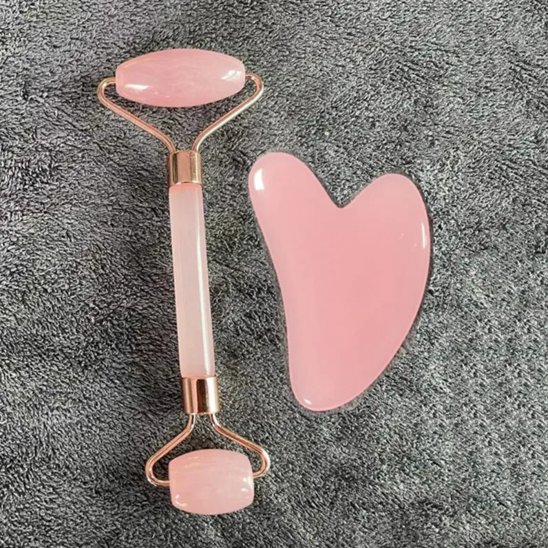Guasha Acupoint Massage Scraping Board Rose Beeswax Face Care Gua Sha Roller Set Skin Lifting Wrinkle Remove Beauty Massage Tool